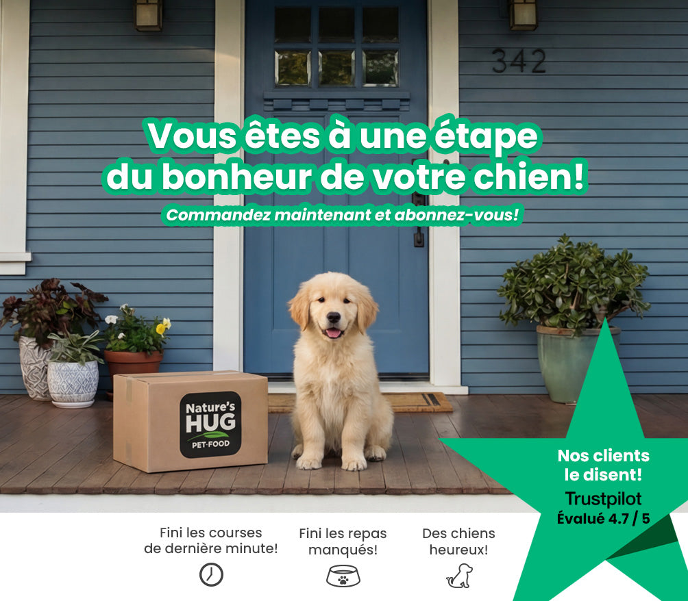 Apprendre encore plus!Nourrir votre animal avec Nature's HUG® réduira considérablement votre empreinte carbone et aura un impact énorme sur l'environnement de manière positive !